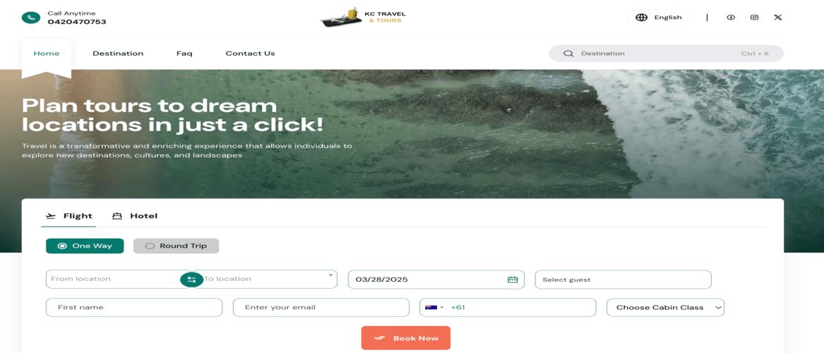AKC Travel and Tours is a rapidly growing travel agency in Australia, committed to providing customers with the best holiday flight deals at unbeatable prices. To enhance their online presence and streamline bookings, Paila developed a modern, user-friendly web platform that ensures a seamless and convenient travel experience. With our expertise in digital solutions, we helped KC Travel and Tours offer a smooth booking process, real-time flight updates, and an enhanced user experience, making travel planning effortless for their customers.